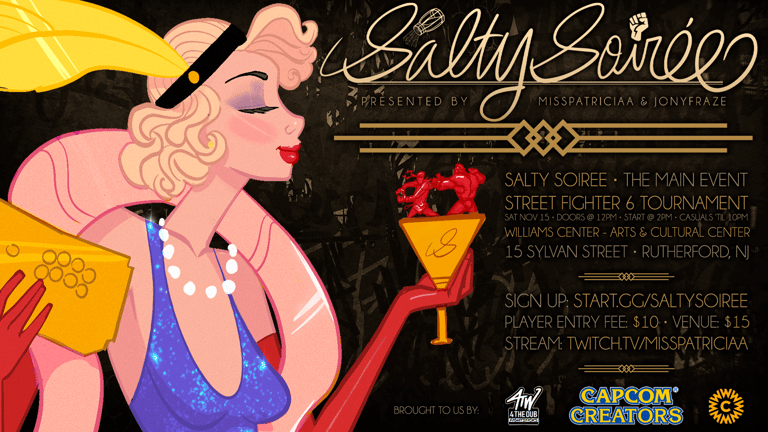 11/15 - Salty Soiree - MAIN EVENT Open Bracket Tournament + $500 pot bonus via Capcom Creators https://www.start.gg/tournament/salty-soiree-2025-the-main-event/details